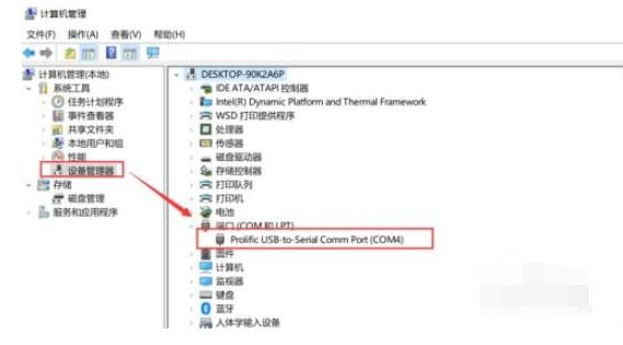 第四步:点击设备管理器查看端口信息,这里端口是COM4