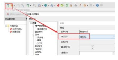 第五步:打开xshell软件,建立回话,选择协议serial