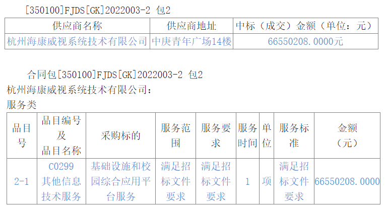 中标供应商:杭州海康威视系统技术有限公司 ,