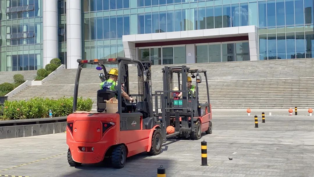 烈日灼灼下,欧派的叉车司机们早已列队整齐,准备就绪。在欧派家居集团与林德双方领导开场致词之后,叉车技能大赛正式开始。现场气氛热烈,高潮迭起上演一场精妙的职业技能角逐。极其考察司机驾驶技术的绕桩竞速赛、头脑与肢体相配合的记忆托盘阵、需要团队协作的篮球接力赛,三大比赛项目从技术水平、操作协调、团队合作不同方面设置,全方位考核叉车司机操作技巧的掌握程度。高难度的技术展示更是对叉车设备灵活性和稳定性的极大考验,林德叉车控制精准、使用舒适、动力强劲全方面满足叉车司机的操作需求,保障选手发挥最佳实力,给予物流搬运高效的支持和陪伴。