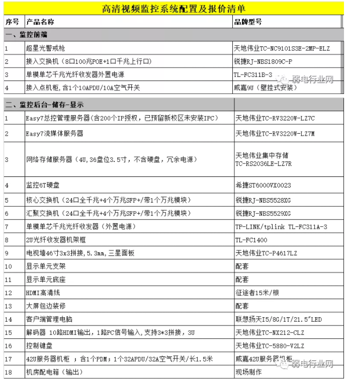 监控项目是弱电中做的最多的项目,是弱电中一个非常大的分支,每天都有不少朋友在给弱电君留言,关于监控报价,在我们弱电VIP技术群也是在不断的讨论和分享监控项目的报价的方法,今天我们来看下,如何对监控系统报价?