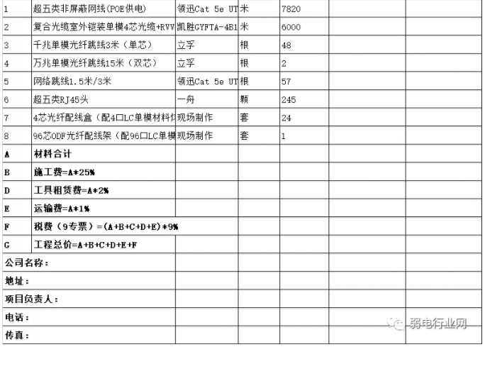 当然项目安装过程中除了施工费、材料费、还有税点,可能还会产生一些运输费或者工具租赁费用,这个需要根据实际项目情况进行预算。