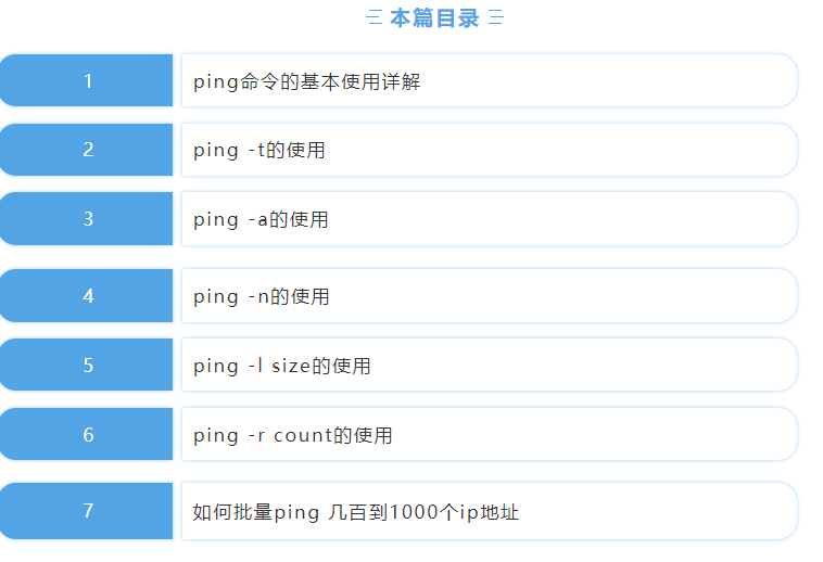 有朋友反映,能不能讲下ping命令的使用,TTL值、time值是什么意思?如何批量ping ip地址?其实对于命令的使用我们之前提到过一些,不断的有朋友问起,ping命令在项目中使用的频率最高,一般我们用的都是它的基本功能,今天我们来详细看下ping命令详细使用。