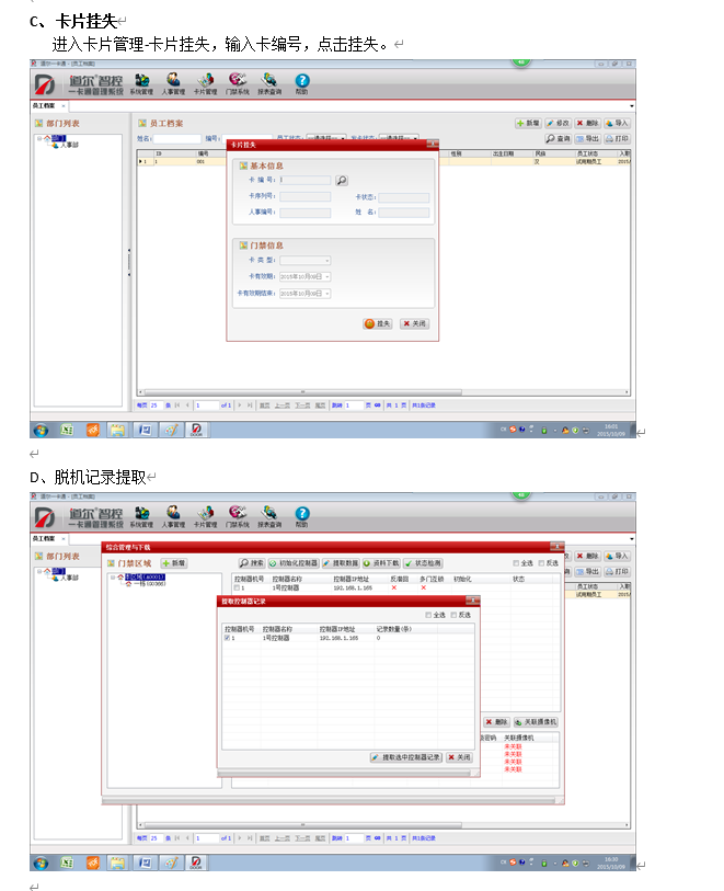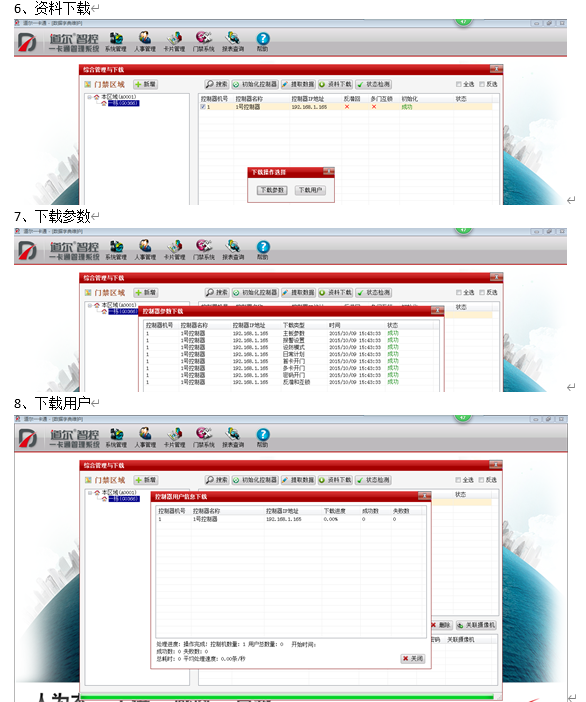 录入用户卡、密码:本控制器支持三种开门方式,即卡加密码、纯卡、纯密码,相应的入步骤也不同,首先,录入用户卡加密码步骤。
