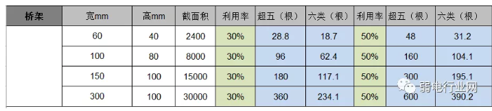 常用桥架的利用率,这里举了一些常见的。在了解桥架的利率之前,我们可以先了解下超五类线与6类线的芯径。