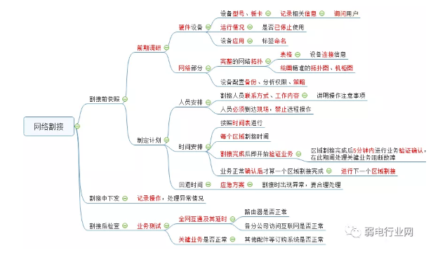 那么割接的具体步骤是什么呢:弱电行业网的这张图可以了解清楚
