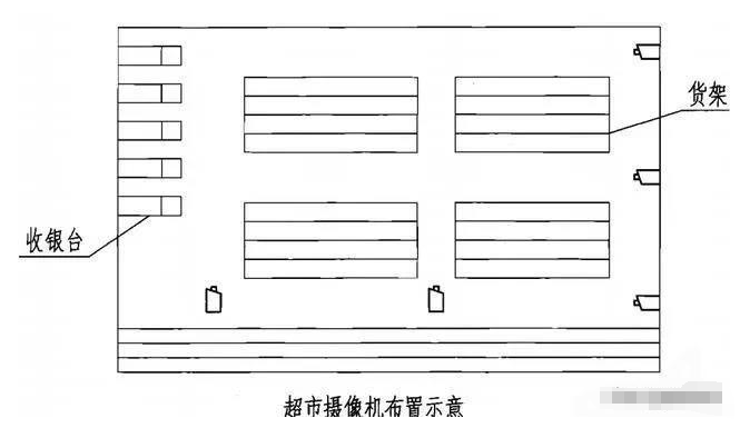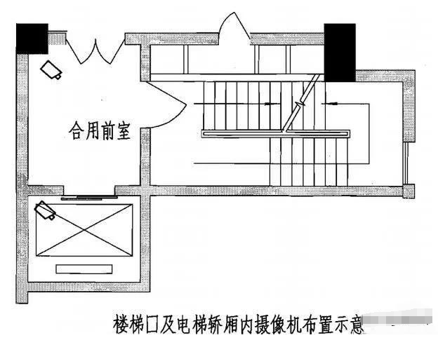 停车场、楼梯口及电梯轿厢、超市、宾馆等场所摄像机布置示意图。