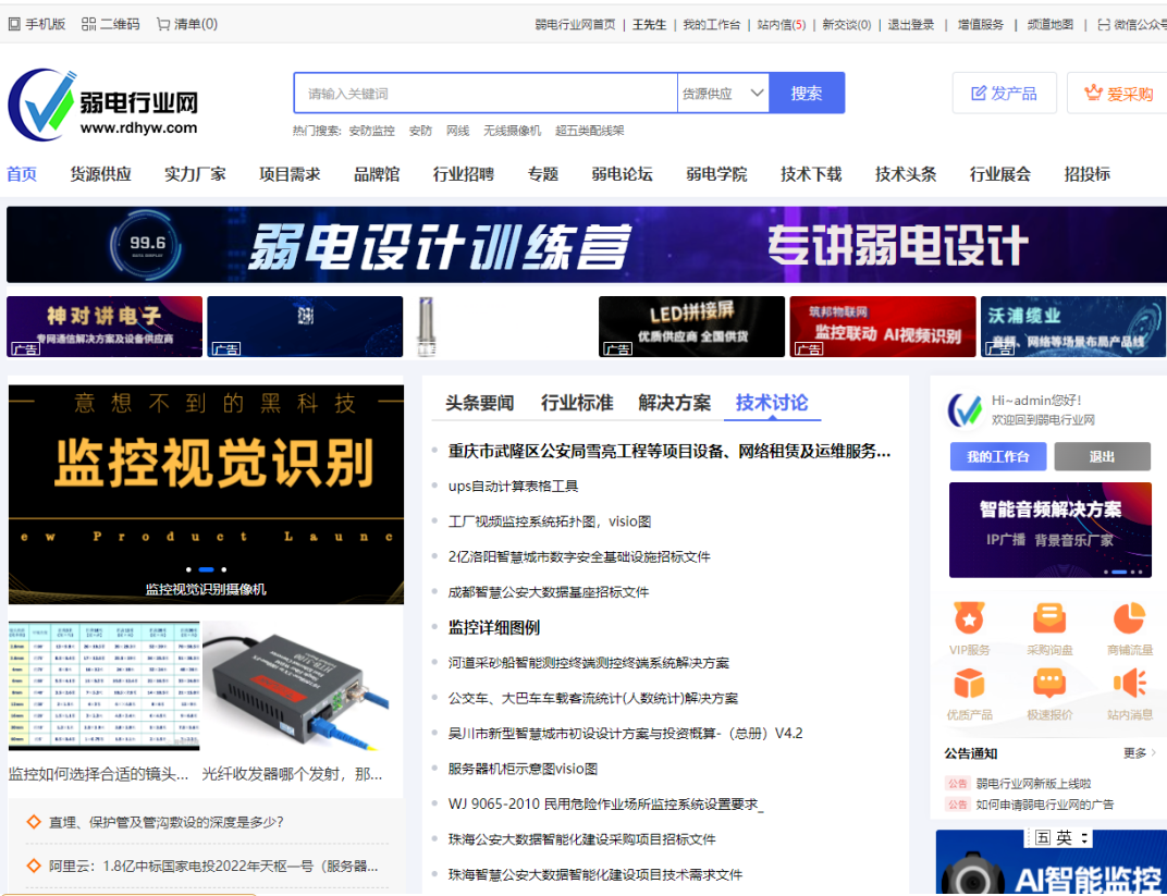 那么弱电行业网的弱电可以做什么呢?主要有哪么几个功能:行业产品发布与展示、需求发布与对接、行业招聘、技术文章学习,技术下载、技术讨论,品牌展示,及一招投标信息、、、等内容。