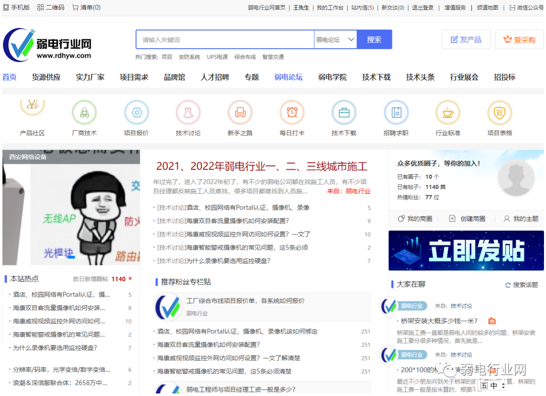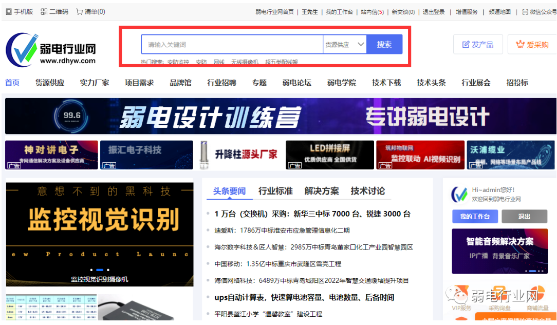 弱电行业网域名www.rdhyw.com(弱电行业网五个字首字母),或者百度搜索弱电行业网也行,电脑端打开体验更好。