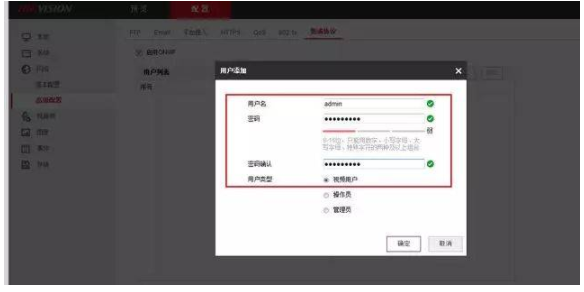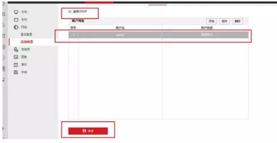 下步设置NOVIF,在设置-网络-高级配置,这高级配置里面有一项集成协议设置,找到一个NOVIF的地方,在NOVIF项打勾,下一步需要在这里添加一个账号及密码,用于在大华录像机里登入的,这个一定要设置好,具体如下图: