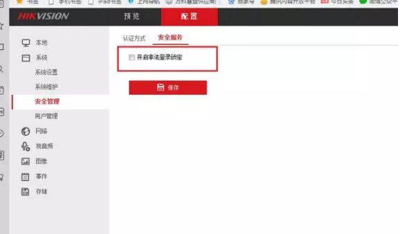 配置流程:配置-系统-安全管理-安全服务,在这项里面找到"开起非法登录锁定",把打勾的去掉,具体如下图