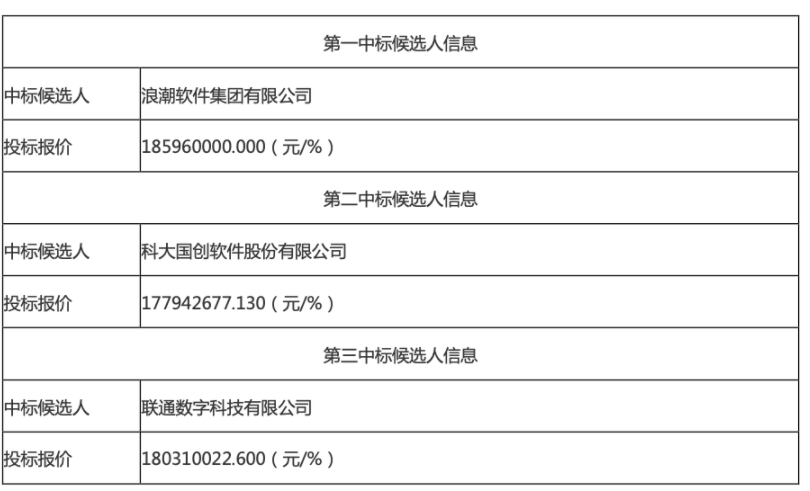中标候选人第一名: 浪潮软件集团有限公司