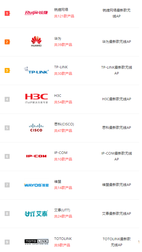 提起无线ap的品牌真是太多了,每个弱电人接触的品牌都基本上不少于5个,这里面我们就列举一些弱电常用的无线AP品牌,(排名不分先后)。