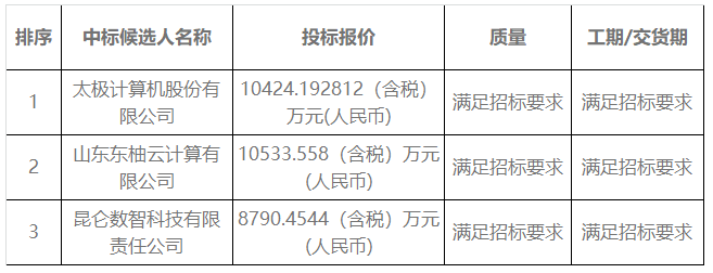 中标候选人第一名:太极计算机股份有限公司
