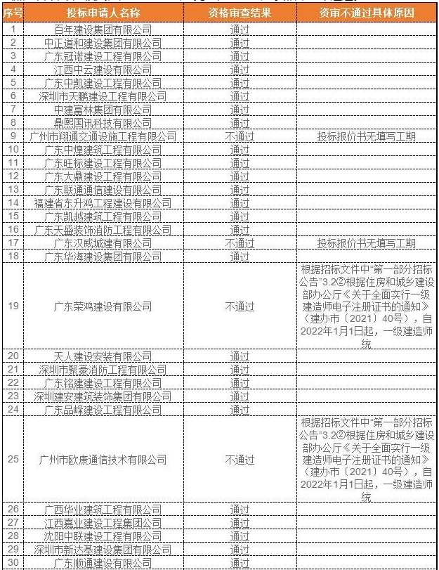 9月6日,湛江市妇幼保健院新院项目智能化工程项目资格审查具体结果公示如下: