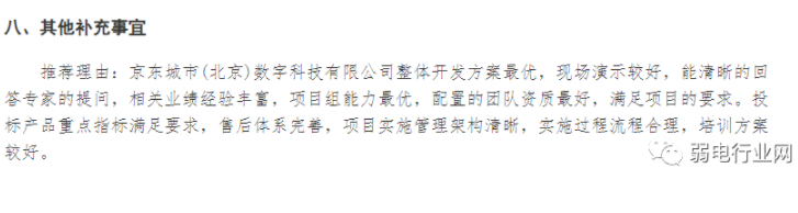 单一来源采购推荐理由:京东城市(北京)数字科技有限公司整体开发方案最优,现场演示较好,能清晰的回答专家的提问,相关业绩经验丰富,项目组能力最优,配置的团队资质最好,满足项目的要求。投标产品重点指标满足要求,售后体系完善,项目实施管理架构清晰,实施过程流程合理,培训方案较好。