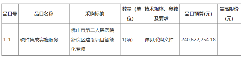 10月18日,佛山市第二人民医院新院区建设项目智能化专项发布招标公告,