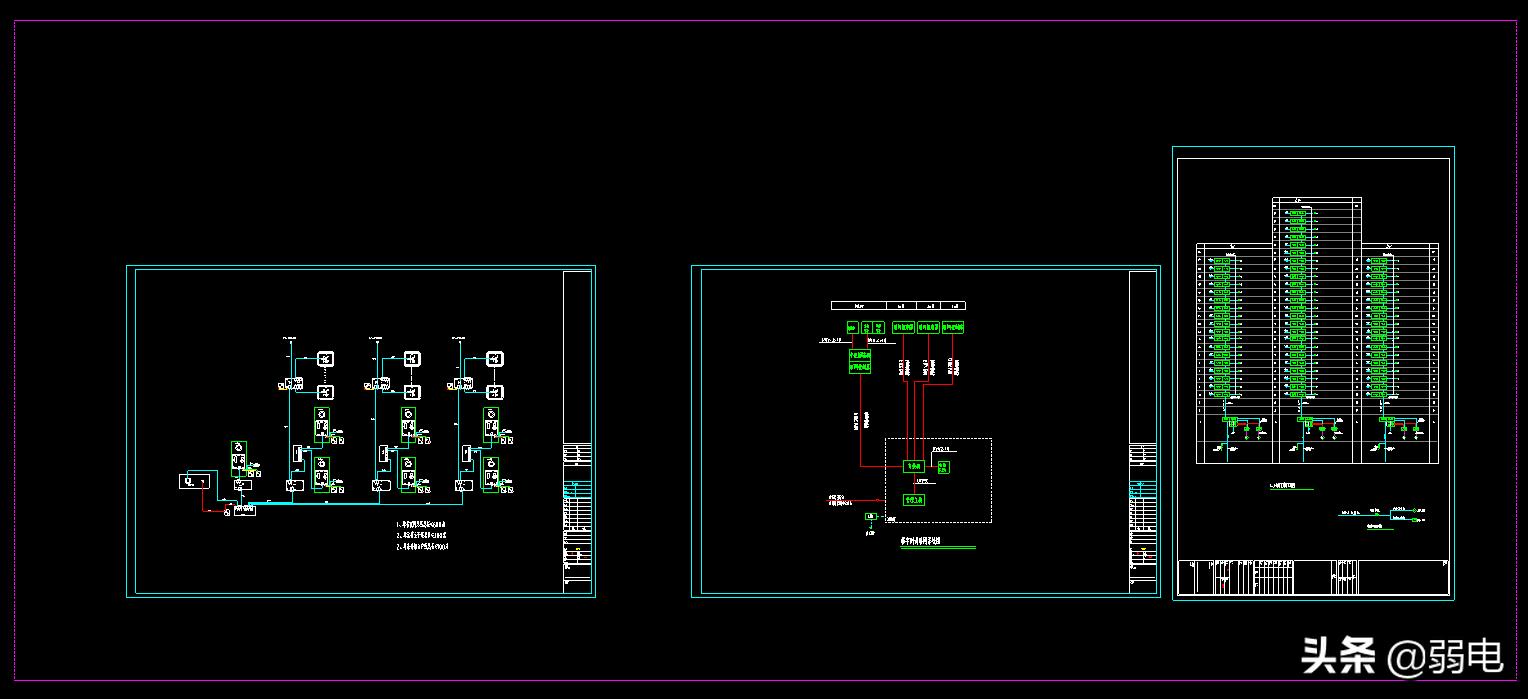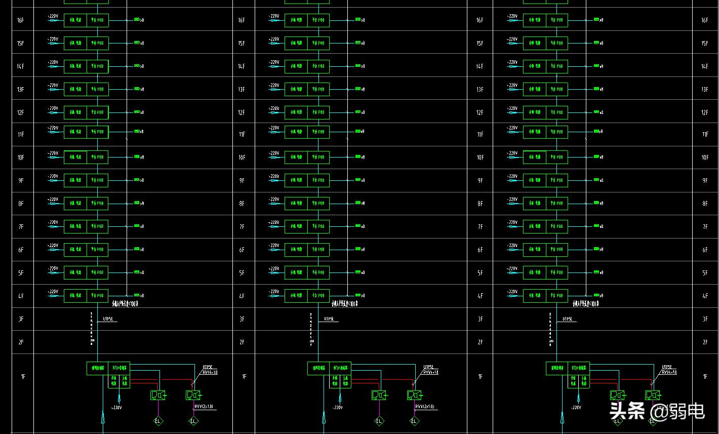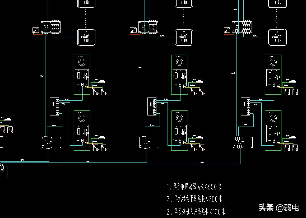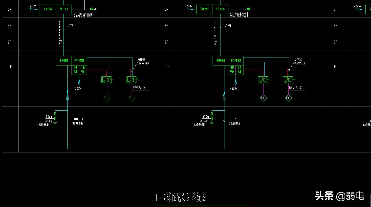 一份楼宇对讲系统图,也是大家常用的,楼宇对讲的项目在弱电中是非常常见的,这份楼宇对讲系统图包括6个部分:1、楼宇对讲走线图