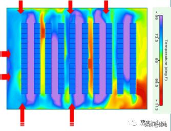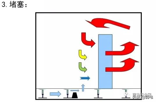 由于墙柱和机架的遮挡,加上风流动的特性 决定在墙柱及机架遮挡后的机柜更容易过热。