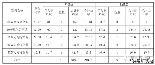 节省空调制冷功率96KW,每年节省空调电能:84.1万 KW·H改造前后的制冷能耗比 :114/211=54%;