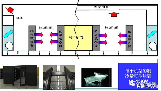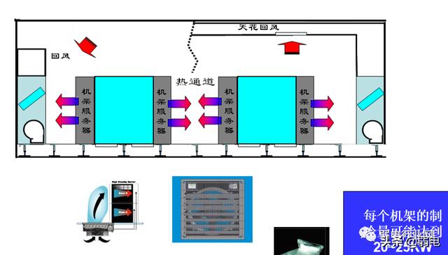 但这两种机房会出现局部过热,机房空调耗能大,耗能比 PUE>2.5(耗能比=机房总能耗/IT能耗)。