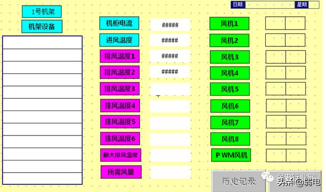 设置6个排风温度测量点取其最大值为排风温度的数值,设置1个进风温度测量点;设置1个电流传感器,当现场无法测定电流时,可根据用户经验将最大电流值输入控制器。