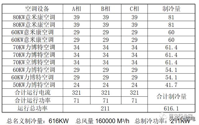 175个,其中带设备机架为124个;设备总运行电流和总功率为324KW,我们认为95%的耗电功率都由热的形式释放,所需制冷量为308KW。由此可见空调的制冷量远大于IT设备的发热量。
