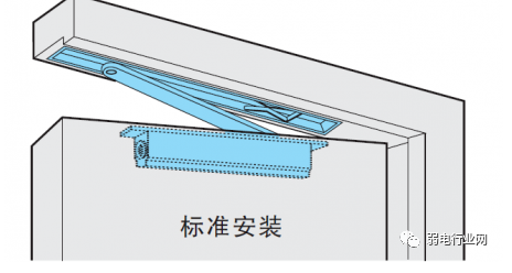 相比于标准安装,平行安装适宜关门力小,开门方向有墙等障碍物。