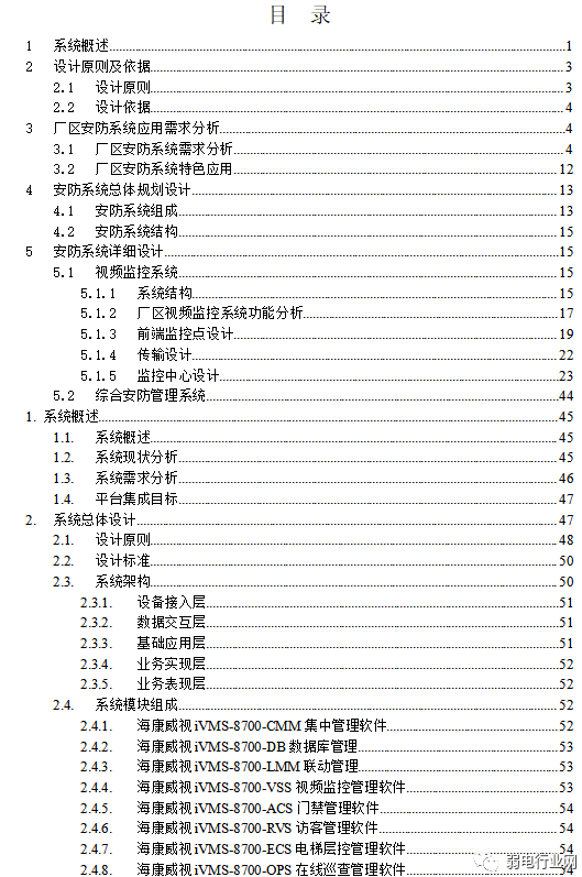 那么这些系统到底如何实现呢?本期我们通过海康的这份厂区安防系统解决方案来详细了解这块内容,内容非常的详细,基本上涉及到了每一个产品与安装的使用,可以帮助大家详细了解海康产品的使用与厂区安防系统的解决方案,有需要的朋友可以下载下。(下载地址在底部)