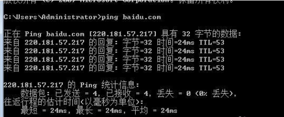 然后我就果断的cmd----ping www.baidu.com有返回值,如下图:
