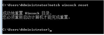 开始——>运行——>输入cmd回车——>输入 netsh winsock reset 命令(重置winsock文件)——>重启系统。
