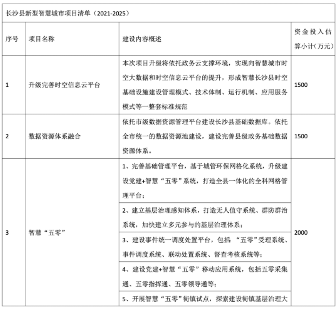 2020年12月23日,长沙县大数据中心长沙县新型智慧城市建设(2021- 2025年)项目第1次公开招标公告发布,总预算 4 亿元。