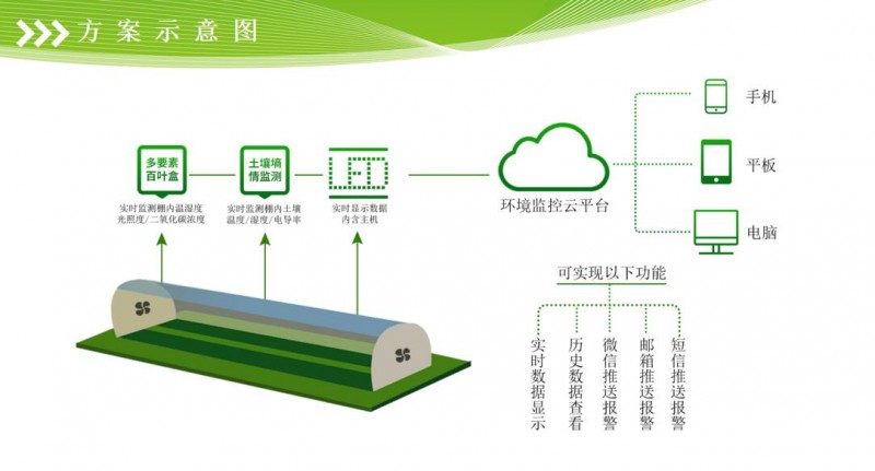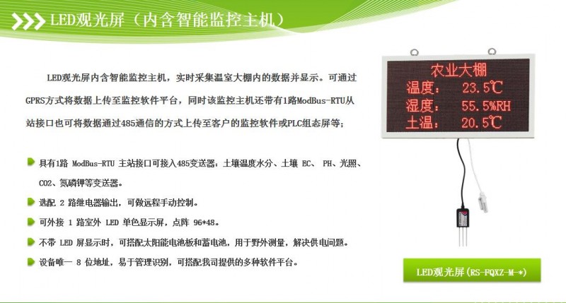 农业大棚环境监测系统解决方案,温湿度 co2 土壤温湿度监测 光照led大屏显示