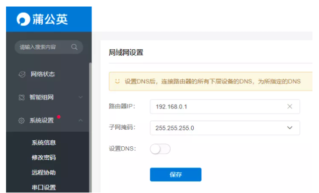 该步骤目的是将蒲公英路由器IP与PLC网段一致。
