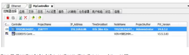 打开soMachine软件,如果设置正确,在 MyContriller中,能直接看到目标PLC,选中 PLC,点击在线即可。