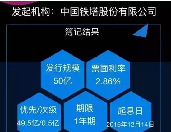 5月19日,与福建省政府签订《共同推进“十三五”数字福建建设合作框架协议》,旨在进一步加快“数字福建”建设和福建省互联网经济发展。 6月7日,与安徽省政府签署战略合作框架协议,共同提升安徽省信息通信基础设施建设水平和信息化服务能力。 7月,与中国移动公司、中国联通公司及中国电信分别订立《商务定价协议》,签订期为五年,租用铁塔、室内分布系统、传输产品及服务产品。并确定租赁费用,当中包括考虑到折旧成、维护费用、成加成率以及共享折扣等。 9月,中国铁塔-中兴通讯联合创新实验室成立,联合创新实验室是中兴通讯为中国铁塔量身打造的综合实验室,能够实现室分、能源、规划、增值业务等综合专业课题的研究和验证。 12月14日,“中国铁塔股份有限公司2016年第一期信托资产支持票据”正式发行。本次发行依托“存量铁塔”和三大运营商应收款项债权,发行金额为50亿元。