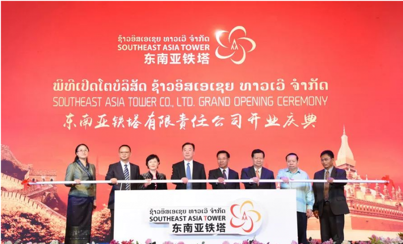 11月20日,在老挝成立东南亚铁塔有限公司,为拓展国际市场迈出第一步。12月18日晚,东南亚铁塔有限公司在老挝首都万象正式挂牌运营。