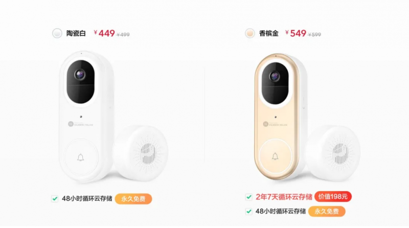 2021年03月30日,此款海雀智能门铃Pro在华为商城已开启众测,陶瓷白定价499元,众测价只需449元;香槟金定价599元,众测价只需549元,含价值198元2年7天循环云存储。