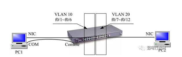 进入配置模式—建vlan—为vlan分配端口——然后将相关的设备(电脑)连接到相应的端口中。基本上就是利用位于不同VLAN之间的端口是无法直接进行通信的原理来实现的。