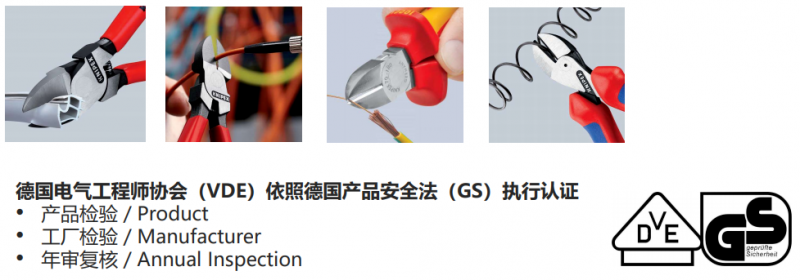 同时作为绝缘钳,安全标准是不能忽略,其中KNIPEX线缆剪完全按照VDE认证标准,安全系数比较高。