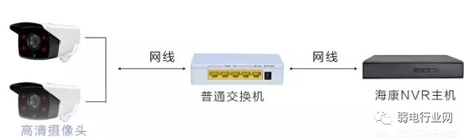 如果多个摄像头比较集中,可以把摄像头连接交换机,