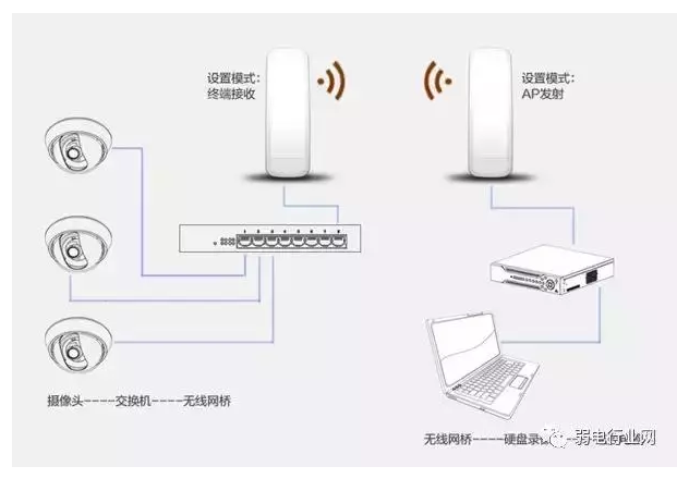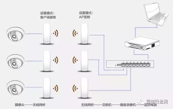 如果摄像头比较分散,距离较远,可每个摄像头都配置一对网桥
