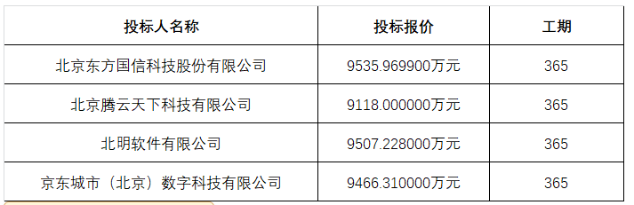 中标候选人:京东城市(北京)数字科技有限公司