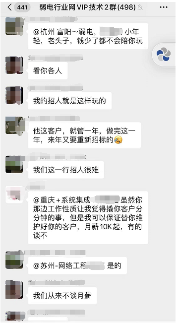 其实行业人才还是有不少的,关键公司是否拿出诚意的待遇,弱电行业的招聘,平时在我们VIP技术群中也经常有不少的老板与项目经理讨论到。
