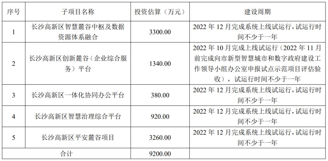 后期在实施过程中,项目建设内容、金额、周期可根据长沙高新区发展实际情况由采购单位进行调整。