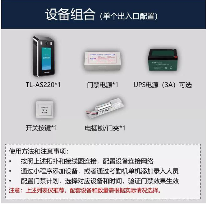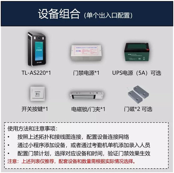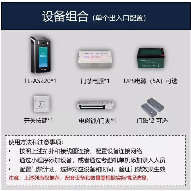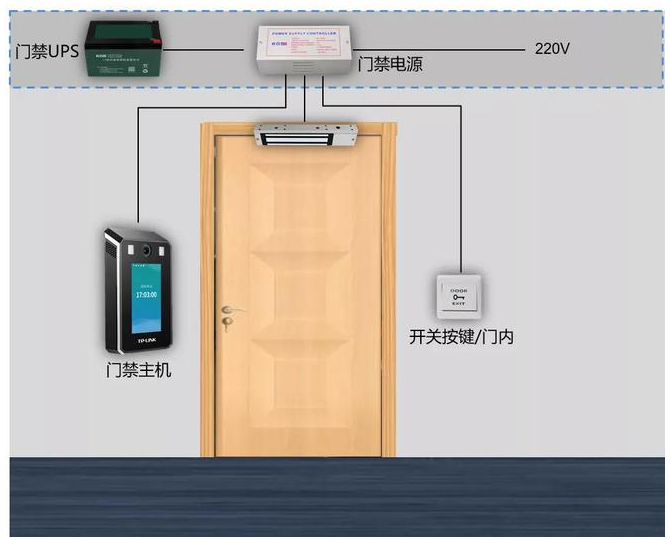 针对木门、铁门等场景,单向开门(内或外开)一般会选择电磁锁,门禁设备连接图和组合推荐如下:
