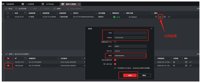 可以去官网下载最新版本的iVMS-4200客户端软件,进入维护与管理-设备管理-设备中添加设备, 添加设备成功后,进入远程配置-其他-门禁参数内设置门禁参数: