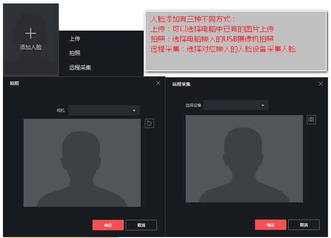 点击人脸进入人脸录入界面。将脸对准设备摄像头,确保人脸在界面的人脸标识内,并等待设备识别人脸。