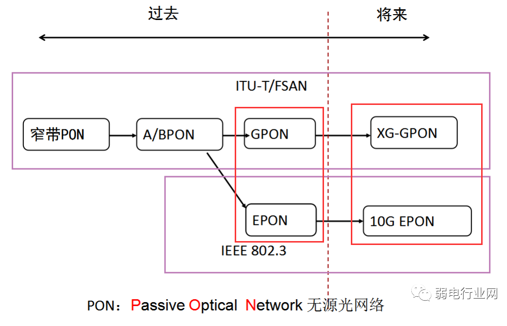 gpon和epon都属于无限光源网络技术,简称是PON,它包括gpon和epon,是发展光纤到户的一种高科技技术,这种技术的推行能节省主干光纤资源和网络层次,还会让网络传输速度加快,提高宽带的拉入能力,它的接入业务种类更丰富,远程管理能力和光源分配结构更为先进的降低运维成本,更能支持多种不同的应用场景。EPON是一种采用点到多点网络结构、无源光纤传输方式、基于高速以太网平台和TDM(时分复用 )时分MAC媒体访问控制方式、提供多种综合业务的宽带接入技术。为了分离同一根光纤上多个用户的来去方向的信号,采用以下两种复用技术。GPON技术是基于ITU-TG.984.x(国际电联TG.984.x)标准的最新一代宽带无源光综合接入标准,具有高带宽,高效率,大覆盖范围,用户接口丰富等众多优点,被大多数运营商视为实现接入网业务宽带化,综合化改造的理想技术。EPON提供固定上下行1.25 Gbps,采用8b/10b线路编码,实际速率为1Gbps。GPON支持多种速率等级,可以支持上下行不对称速率,下行2.5Gbps或1.25Gbps,上行1.25Gbps,根据实际需求来决定上下行速率,选择相对应光模块,提高光器件速率价格比。分路比即一个OLT端口(局端)带多少个ONU(用户端) 。GPON 标准定义分路比下列几种1:32;1:64;1:128。GPON和EPON是即相似而又两种不同的技术,他们的传输链路的介质是一样的。1、GPON从性能上来说要优于EPON,GPON支持多种速率等级,可以支持上下行不对称速率,GPON在光器件的选择上余度更大,从而可降低成本。2、EPON只支持Class A和B的ODN等级,而GPON可支持Class A、B和C,因此GPON可支持高达128的分路比和长达20km的传输距离。3、单从协议上比较,因为EPON标准是以802.3体系结构为基础,因此与GPON标准相比其协议分层更简单,系统实现更容易。一、10G EPON(802.3av的10-Gbit/s以太网版本):带宽:实际速率是10.3125 Gbit/s,分对称(10 Gbps的上下行速率)与不对称(10Gbps下行和1 Gbps上行)两种类型。分光比:1:128的分光比,相对EPON&GPON,分光能力更强且可以承载更多的用户。带宽:上下行非对称(上行2.5Gbps,下行10Gbps)。分光比:1:128,在相同分光比的情况下,10G GPON最大传输距离可达到40KM。