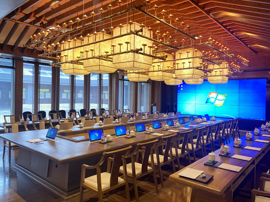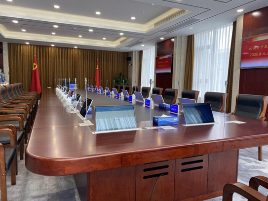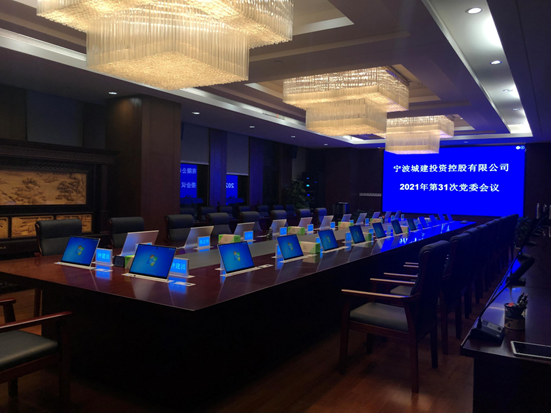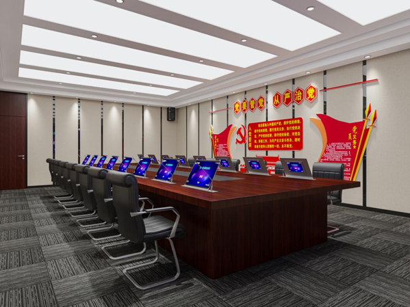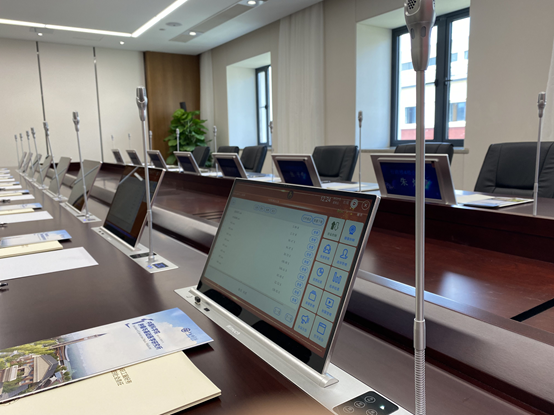 智能无纸化多媒体会议室的建设目标,恰好摈弃了传统纸质会议众多缺陷。仅需一人即可管理任意时间段不同会议的创建,资料的上传,会场人员布局的规划安排。在保障会议信息不外泄的局域网络环境下,实现纸质电子文件的会议交流。超高清LED显示大屏能多画面显示会议电子学习材料,屏幕绿色护眼更清晰,对帮助与会人员获取会议内容精准信息及注意力交互有明显的提升作用。可升降运行显示屏和话筒,既满足会议室多场景使用的需求,又能做到纸质会议文件板式阅读和手写批注的操作特点,且参会人员之间能交互式同屏交流,致使会议的各种图文信息共享显示,加强会议信息联动。而集中控制系统的兼容设计,更是把会议单一、繁琐的流程简化到极致。进一步提高参会人对重要文件学习研讨、重要事项研究决议等不同会议的效率,更好的辅助领导决策。